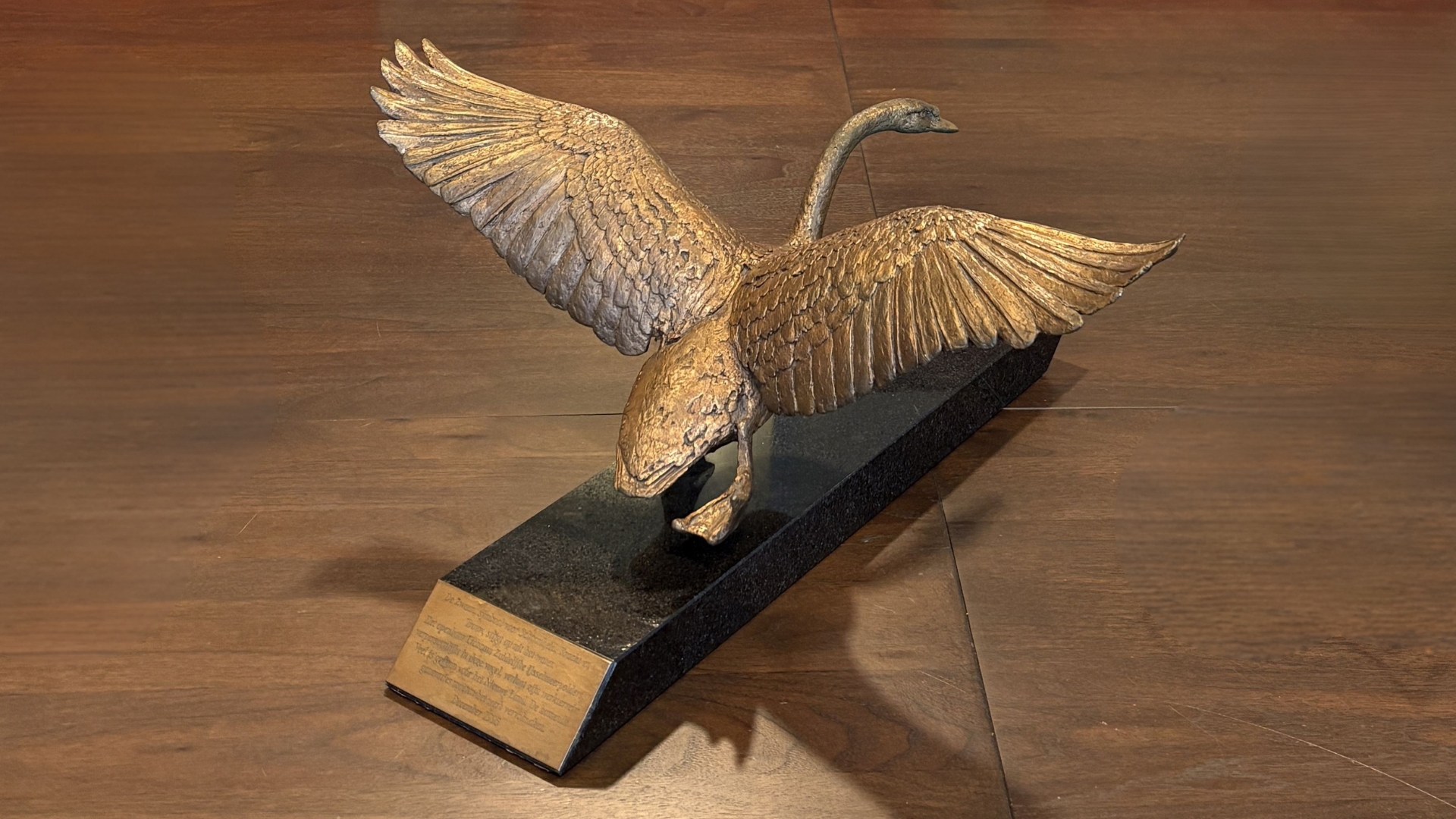 Dit kunstwerk verwijst naar de totstandkoming van het bestuursorgaan: provincie Flevoland. De zwaan die uitvliegt staat symbool voor deze transformatie en de verwachting op een mooie toekomst. Tegelijkertijd was het destijds voor veel inwoners een bittere pil dat de inpoldering van de Markerwaard niet plaats zou vinden.