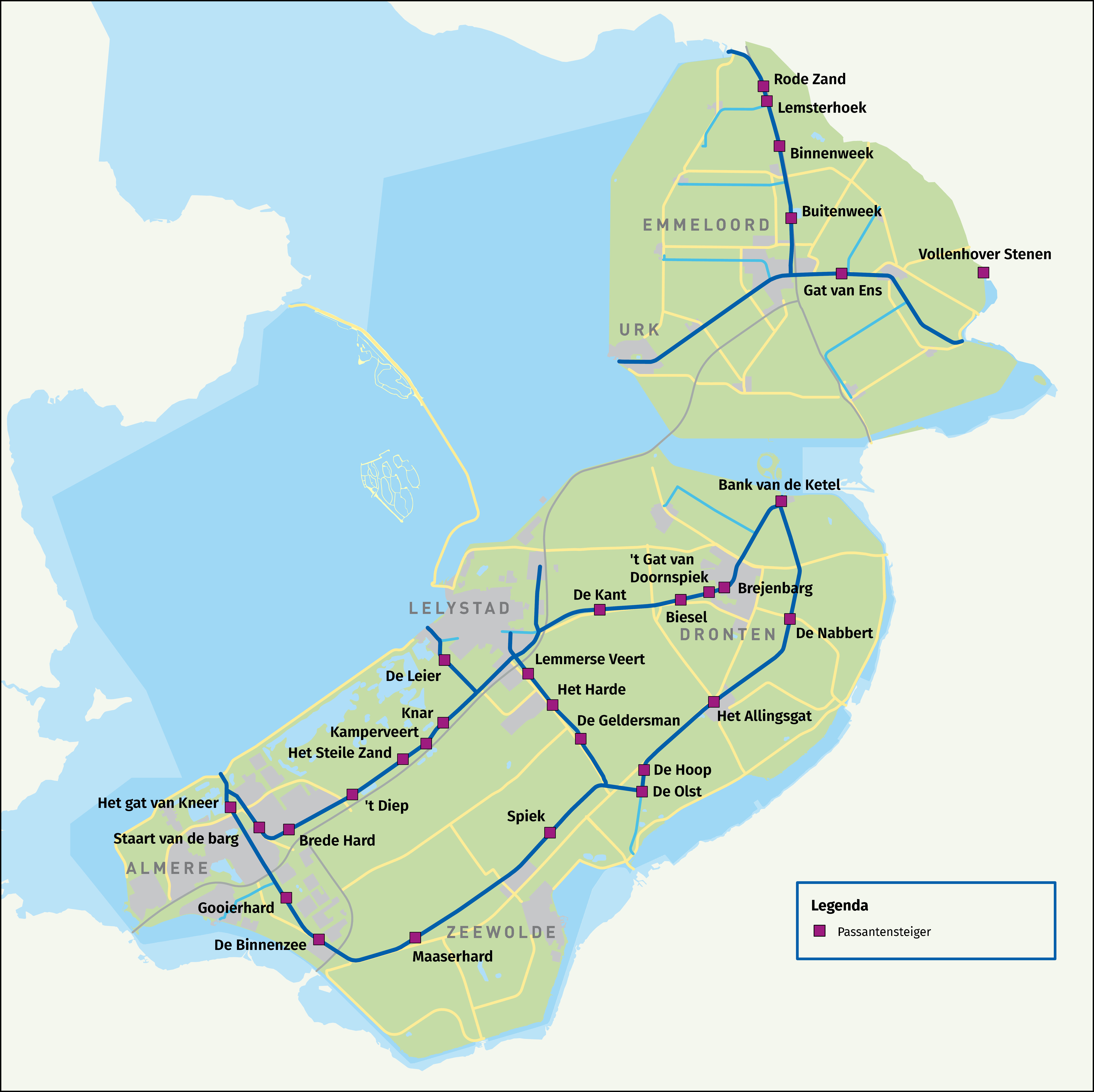 - Het gebruik van passantensteigers is geheel op eigen risico. Provincie Flevoland kan nooit aansprakelijk worden gesteld voor enige vorm van schade aan eigendommen of personen (met inbegrip van verlies, diefstal en andere vormen van vermissing).