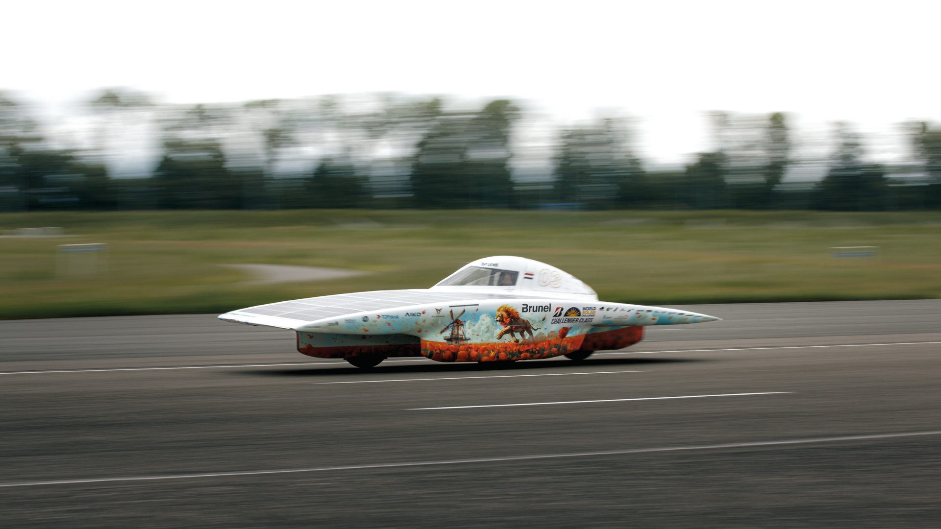 Brunel Solar Team test aerodynamica zonneauto in Zeewolde