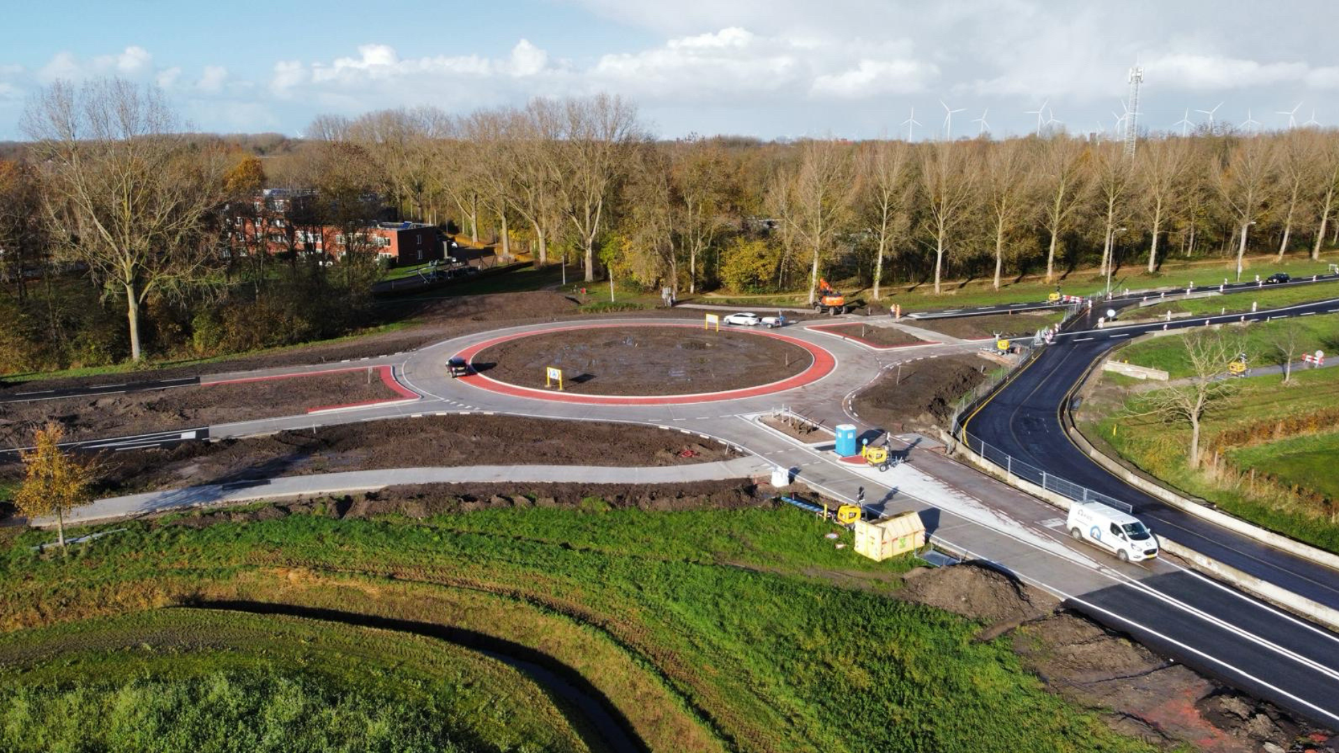 Met de openstelling is de laatste fase van de werkzaamheden afgerond. De aanleg van de rotonde liep wat vertraging op door het natte weer in oktober, waardoor het beton niet op tijd kon uitharden. Om schade aan het wegdek te voorkomen, is ervoor gekozen de openstelling één week uit te stellen.