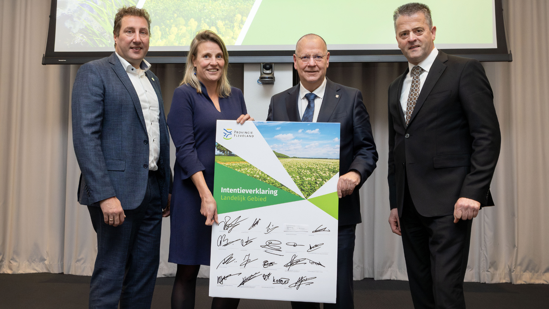 Het unieke landelijk gebied van Flevoland staat onder druk door complexe vraagstukken. Denk aan intensief land- en watergebruik, klimaatverandering, bodemdaling en verzilting. Deze uitdagingen vragen om een gezamenlijke aanpak. Juist daarom hebben we op donderdag 4 december samen met zes Flevolandse gemeenten, Staatsbosbeheer, Waterschap Zuiderzeeland, negen landbouworganisaties en terreinbeherende organisaties een intentieverklaring ondertekend.