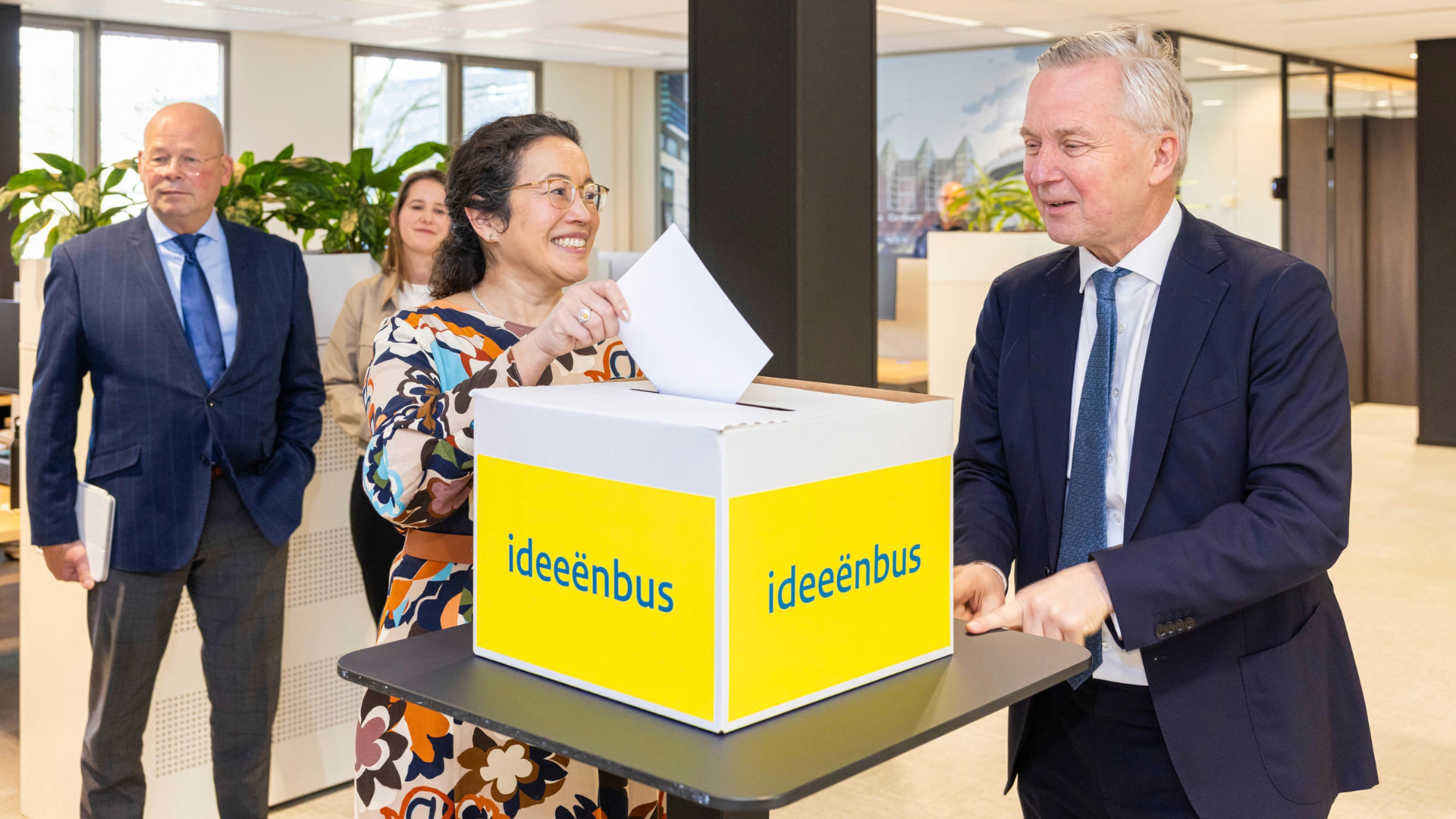 Staatssecretaris Van der Burg bracht ook een ideeënbus mee tijdens het werkbezoek. “Goede ideeën ontstaan namelijk zelden alleen; samen weten mensen nu eenmaal meer dan één persoon. Hier in Lelystad hebben we daarnaast een werkplek ingericht, zodat medewerkers niet altijd naar Den Haag hoeven te reizen. Door mensen dicht bij elkaar te laten samenwerken, wordt het makkelijker om kennis te delen en vraagstukken sneller op te lossen."